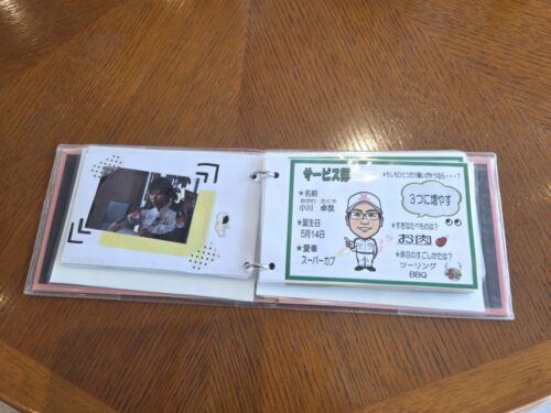 10年くらい前に作製したお客様の大切なご家族、ワンちゃん・ネコちゃんBOOKが今もあります。スタッフの手作りです。